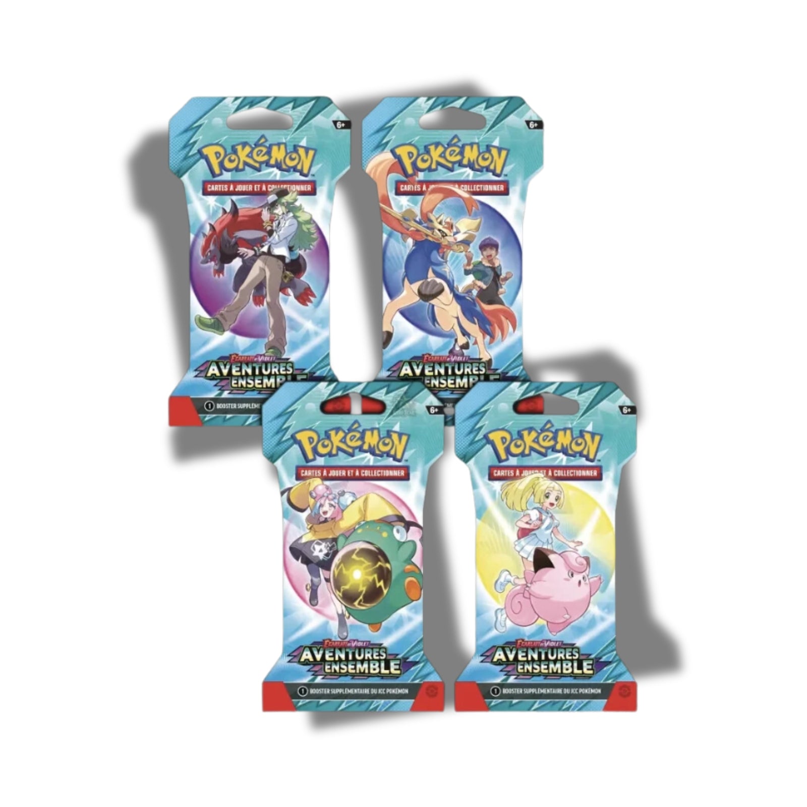 Chaque Blister EV09 – Aventures Ensemble contient 1 booster scellé de la série Écarlate et Violet : Aventures Ensemble (EV09).